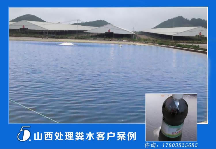 山西一位李老板的猪场,因为每天排放的粪水比较多而且还臭,经常接到邻里的投诉,所以就利用豫启富em菌液处理,到第7天的时候,粪水就已经没啥臭味了,也没有邻居投诉了。配合着其它的处理方法,综合使用,15天的时候,就正常排放了。 随着em菌液的兴盛,市场上销售em菌液的也越来越多,各种牌子的都有,可谓鱼龙混杂,而em菌液本身又是由菌复合而成的,菌是无法用肉眼看到的,所以,分辨em菌液好坏还真不容易!我本人从事em菌液的销售也有5年多了,对这一块的了解还是比较多的,很多em菌液销售者都是没有资质的,甚至有些是小作坊!更严重的是,大多数做的不是原液,是二代三代甚至代数更高的繁殖菌!菌繁殖次数多了,如果操作不当,很可能引起有害菌,而不是有益菌了!自然不会有效果!